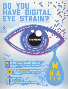 Do your eyes ever feel tired or strained after a long day of staring at your computer screen? Do you find yourself getting headaches, eye aches, and dry eyes while reading the small text on your phone? Do you experience neck, shoulder, and/or back pain? If so, you may be suffering from Digital Eye Strain, also known as Computer Vision Syndrome.