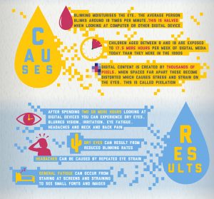 Digital Eye Strain is a phenomenon that occurs in people of all ages and primarily affects those who frequently use digital devices including, but not limited to, computers, tablets, smart phones, e-readers, televisions, and gaming devices. Digital eye strain causes ocular discomfort (eye aches and eye fatigue) after more than two consecutive hours of device use.